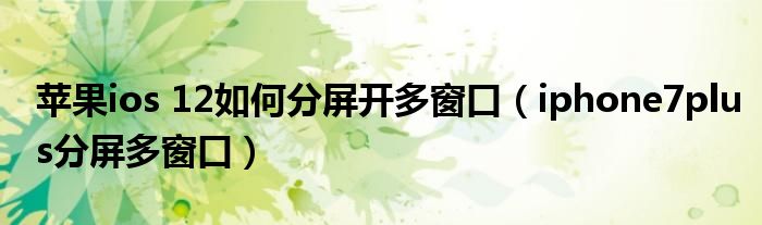 导读 大家好,小跳为你解答以上问题。苹果ios 12如何分屏开多窗口,iphone7plus分屏多窗口这个问题很多人还不知道,现在让我们一起来看看吧!