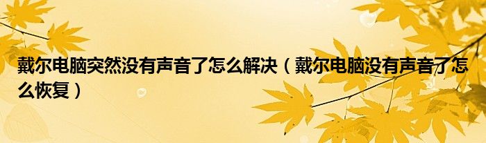 戴尔电脑突然没有声音了怎么解决(戴尔电脑没有声音了怎么恢复)