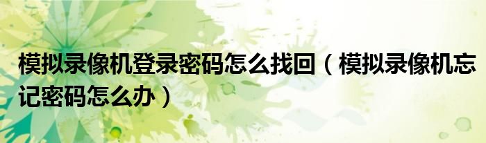 模拟录像机登录密码怎么找回(模拟录像机忘记密码怎么办)