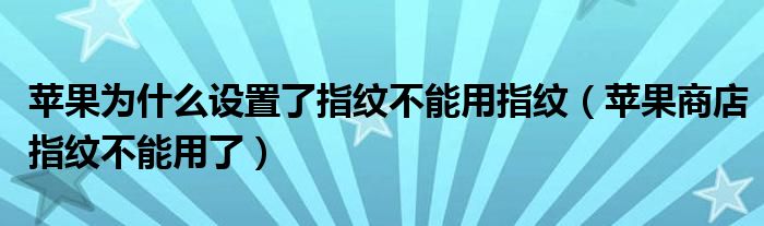 苹果为什么设置了指纹不能用指纹(苹果商店指纹不能用了)