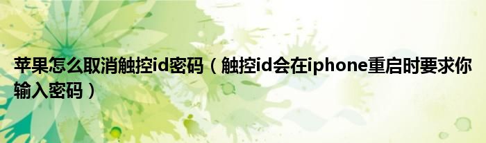 导读 大家好,小跳为你解答以上问题。苹果怎么取消触控id密码,触控id会在iphone重启时要求你输入密码这个问题很多人还不知道,现在让我们一起来