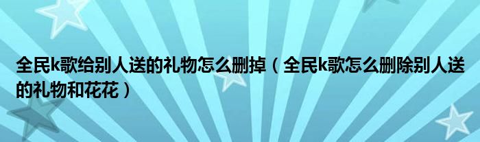 导读 大家好,小跳为你解答以上问题。全民k歌给别人送的礼物怎么删掉,全民k歌怎么删除别人送的礼物和花花这个问题很多人还不知道,现在让我们一