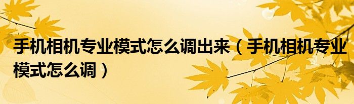手机相机专业模式怎么调出来(手机相机专业模式怎么调)