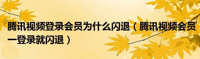导读 大家好,小跳为你解答以上问题。腾讯视频登录会员为什么闪退,腾讯视频会员一登录就闪退这个问题很多人还不知道,现在让我们一起来看看吧!