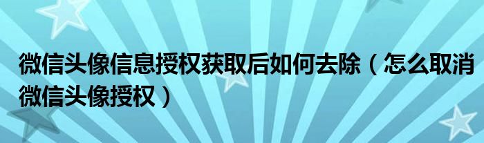导读 大家好,小跳为你解答以上问题。微信头像信息授权获取后如何去除,怎么取消微信头像授权这个问题很多人还不知道,现在让我们一起来看看吧!