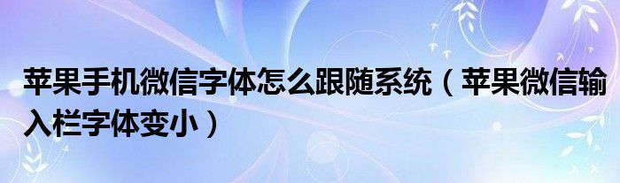 导读 大家好,小跳为你解答以上问题。苹果手机微信字体怎么跟随系统,苹果微信输入栏字体变小这个问题很多人还不知道,现在让我们一起来看看吧!