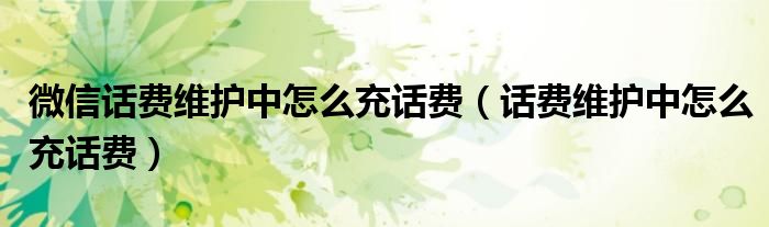 微信话费维护中怎么充话费(话费维护中怎么充话费)