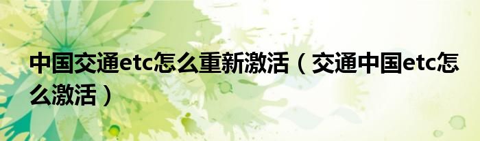 中国交通etc怎么重新激活(交通中国etc怎么激活)