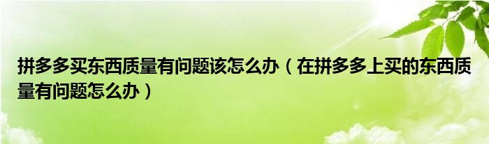 拼多多买东西质量有问题该怎么办(在拼多多上买的东西质量有问题怎么办)