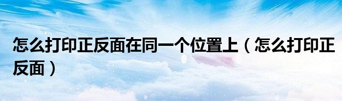怎么打印正反面在同一个位置上(怎么打印正反面)