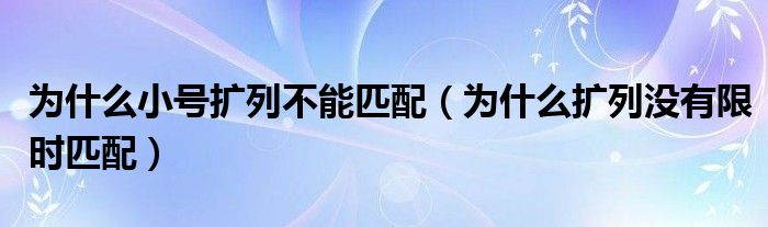 为什么小号扩列不能匹配(为什么扩列没有限时匹配)