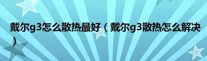 戴尔g3怎么散热最好(戴尔g3散热怎么解决)