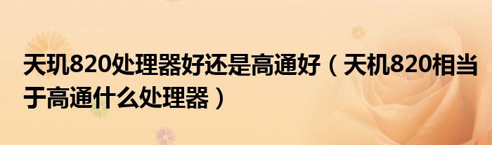 导读 大家好,小跳为你解答以上问题。天玑820处理器好还是高通好,天机820相当于高通什么处理器这个问题很多人还不知道,现在让我们一起来看看吧