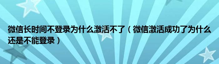 微信长时间不登录为什么激活不了(微信激活成功了为什么还是不能登录)