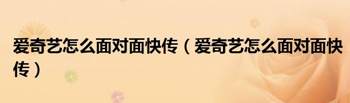 爱奇艺怎么面对面快传(爱奇艺怎么面对面快传)