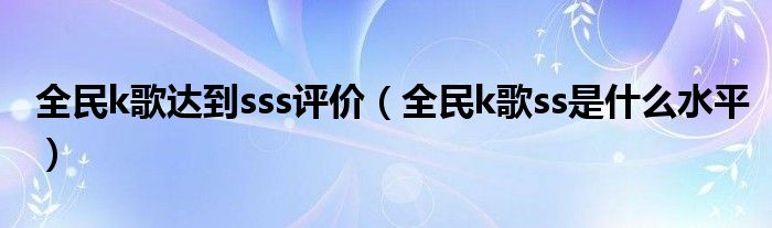 导读 大家好,小跳为你解答以上问题。全民k歌达到sss评价,全民k歌ss是什么水平这个问题很多人还不知道,现在让我们一起来看看吧!