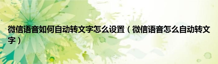 导读 大家好,小跳为你解答以上问题。微信语音如何自动转文字怎么设置,微信语音怎么自动转文字这个问题很多人还不知道,现在让我们一起来看看吧