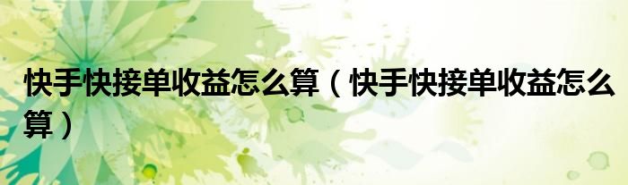 快手快接单收益怎么算(快手快接单收益怎么算)
