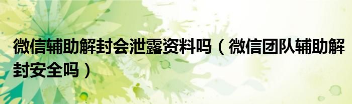 导读 大家好,小跳为你解答以上问题。微信辅助解封会泄露资料吗,微信团队辅助解封安全吗这个问题很多人还不知道,现在让我们一起来看看吧!