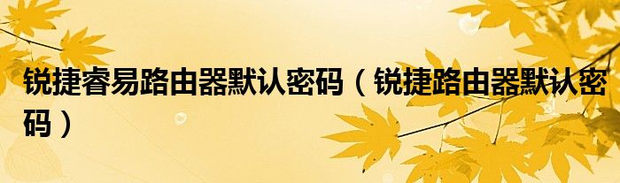 导读 大家好,小跳为你解答以上问题。锐捷睿易路由器默认密码,锐捷路由器默认密码这个问题很多人还不知道,现在让我们一起来看看吧!