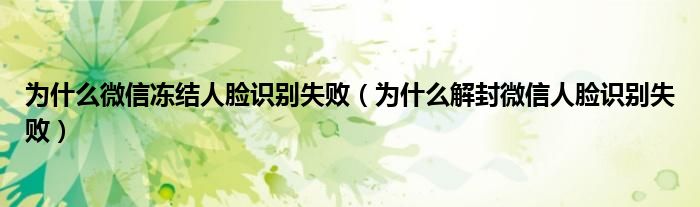 为什么微信冻结人脸识别失败(为什么解封微信人脸识别失败)