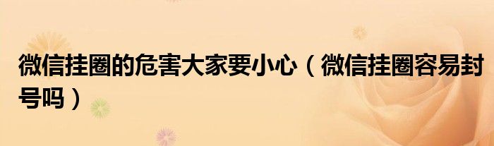 导读 大家好,小跳为你解答以上问题。微信挂圈的危害大家要小心,微信挂圈容易封号吗这个问题很多人还不知道,现在让我们一起来看看吧!