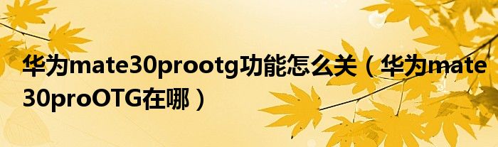 华为mate30prootg功能怎么关(华为mate30proOTG在哪)
