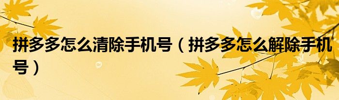 拼多多怎么清除手机号(拼多多怎么解除手机号)
