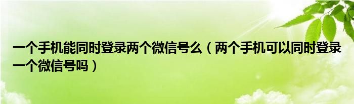 一个手机能同时登录两个微信号么(两个手机可以同时登录一个微信号吗)