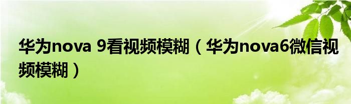 华为nova 9看视频模糊(华为nova6微信视频模糊)
