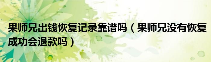 果师兄出钱恢复记录靠谱吗(果师兄没有恢复成功会退款吗)