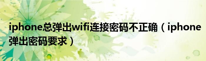 导读 大家好,小跳为你解答以上问题。iphone总弹出wifi连接密码不正确,iphone弹出密码要求这个问题很多人还不知道,现在让我们一起来看看吧!