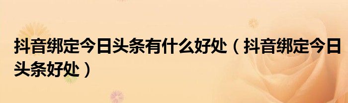 抖音绑定今日头条有什么好处(抖音绑定今日头条好处)