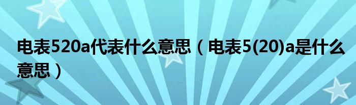 导读 大家好,小跳为你解答以上问题。电表520a代表什么意思,电表5(20)a是什么意思这个问题很多人还不知道,现在让我们一起来看看吧!