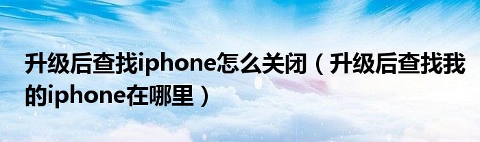 导读 大家好,小跳为你解答以上问题。升级后查找iphone怎么关闭,升级后查找我的iphone在哪里这个问题很多人还不知道,现在让我们一起来看看吧!