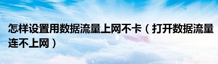 导读 大家好,小跳为你解答以上问题。怎样设置用数据流量上网不卡,打开数据流量连不上网这个问题很多人还不知道,现在让我们一起来看看吧!