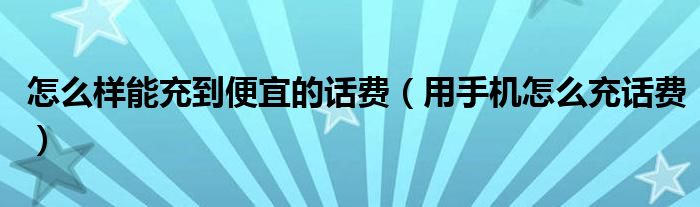 怎么样能充到便宜的话费(用手机怎么充话费)