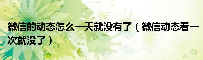 导读 大家好,小跳为你解答以上问题。微信的动态怎么一天就没有了,微信动态看一次就没了这个问题很多人还不知道,现在让我们一起来看看吧!
