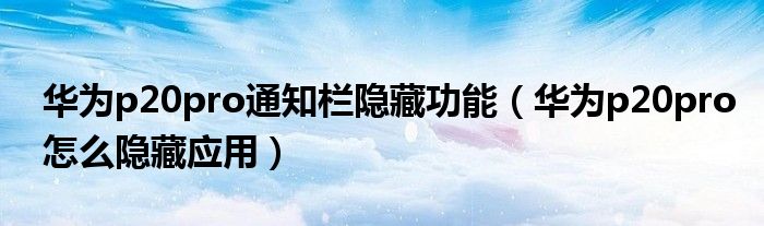 导读 大家好,小跳为你解答以上问题。华为p20pro通知栏隐藏功能,华为p20pro怎么隐藏应用这个问题很多人还不知道,现在让我们一起来看看吧!