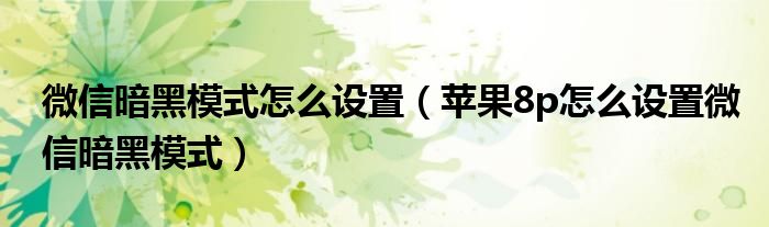 微信暗黑模式怎么设置(苹果8p怎么设置微信暗黑模式)
