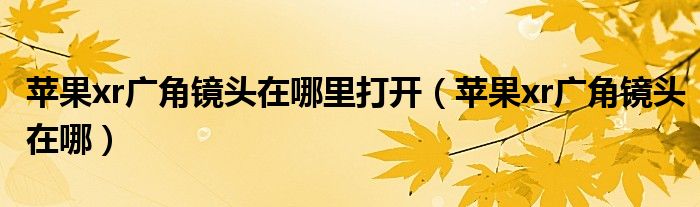 苹果xr广角镜头在哪里打开(苹果xr广角镜头在哪)
