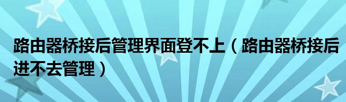 路由器桥接后管理界面登不上(路由器桥接后进不去管理)