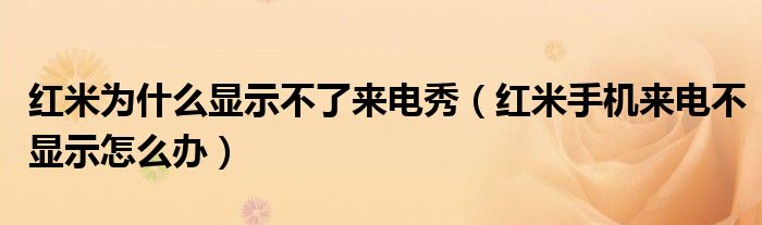 导读 大家好,小跳为你解答以上问题。红米为什么显示不了来电秀,红米手机来电不显示怎么办这个问题很多人还不知道,现在让我们一起来看看吧!