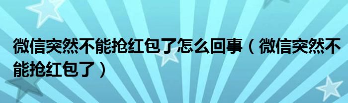 微信突然不能抢红包了怎么回事(微信突然不能抢红包了)