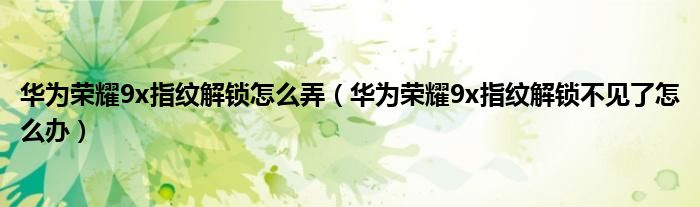 华为荣耀9x指纹解锁怎么弄(华为荣耀9x指纹解锁不见了怎么办)