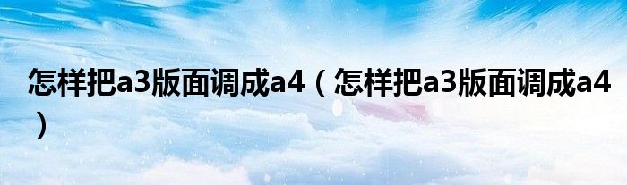怎样把a3版面调成a4(怎样把a3版面调成a4)