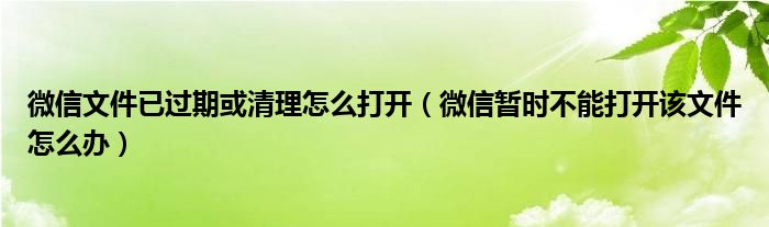 微信文件已过期或清理怎么打开(微信暂时不能打开该文件怎么办)