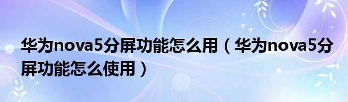 华为nova5分屏功能怎么用(华为nova5分屏功能怎么使用)
