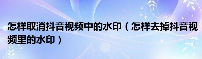 怎样取消抖音视频中的水印(怎样去掉抖音视频里的水印)