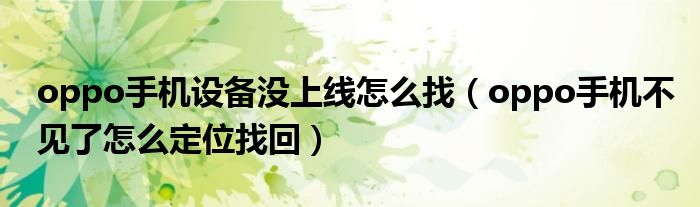 导读 大家好,小跳为你解答以上问题。oppo手机设备没上线怎么找,oppo手机不见了怎么定位找回这个问题很多人还不知道,现在让我们一起来看看吧!